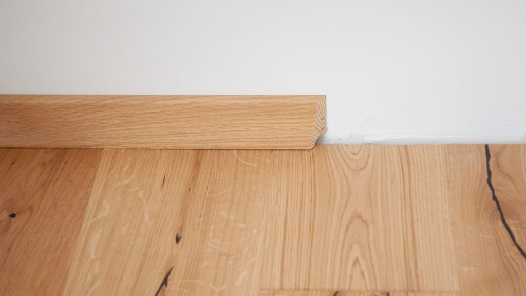 8. Medzery medzi soklovou lištou na stene sú zamaskované napr. akrylom. Pri tmavých stenách ju môžeme natrieť rovnakou farbou, aby bola menej viditeľná. Prípadné medzery medzi soklovou lištou a drevenou podlahou treba vyplniť parketovými tmelmi vhodnej farby.