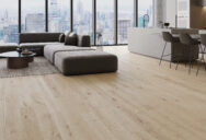 1-lamelové dosky farbené v odtieni popola, s prirodzenou štruktúrou dreva zvýraznenou kartáčovaním. Prekryté matným lakom.