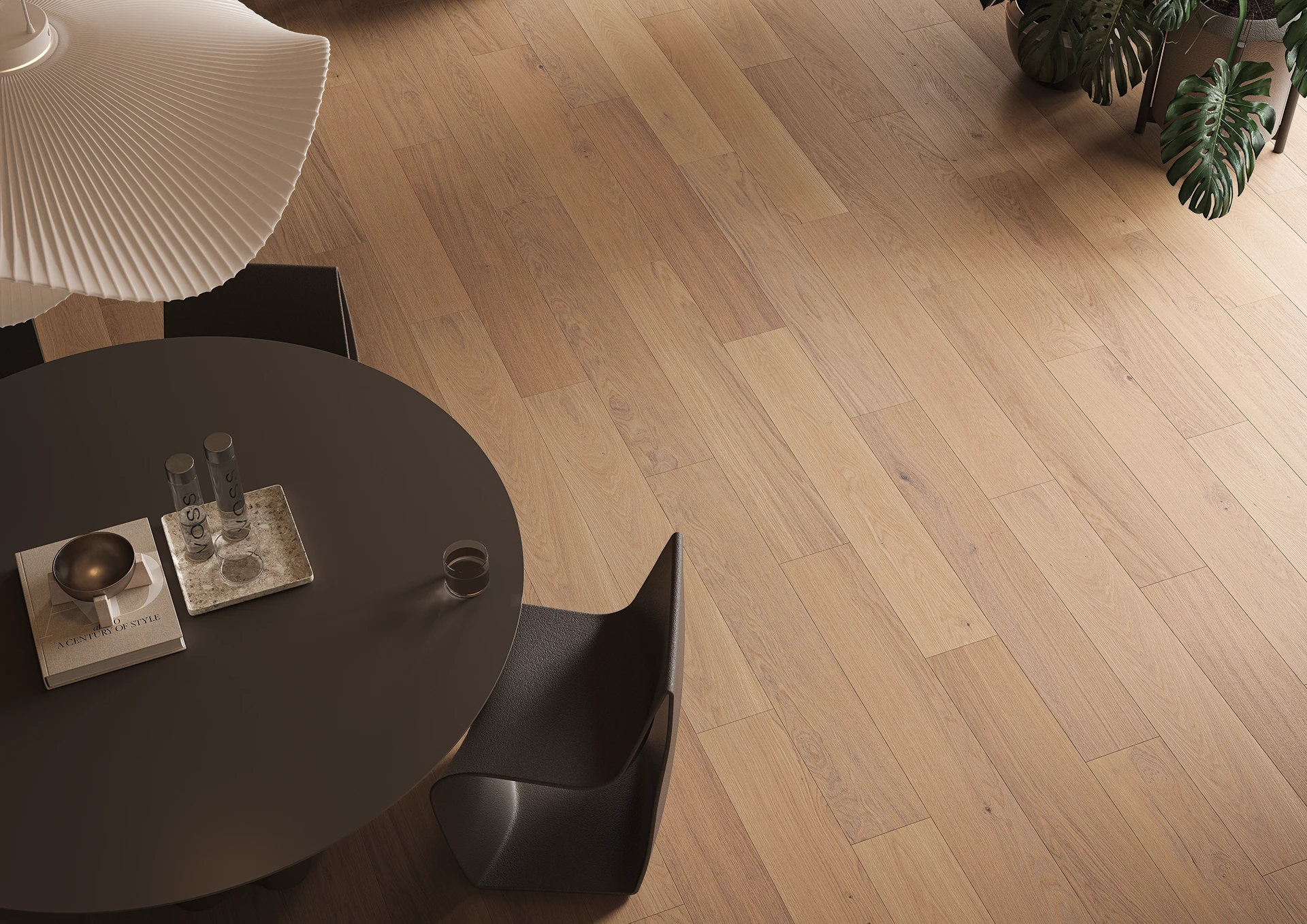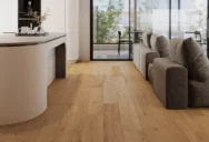 Slabozafarbená dubová podlaha spája jemnú eleganciu s prírodným štýlom. Jemné belenie zvýrazňuje kresbu letokruhov, rozjasňuje drevo a dodáva interiéru svieži, harmonický charakter.